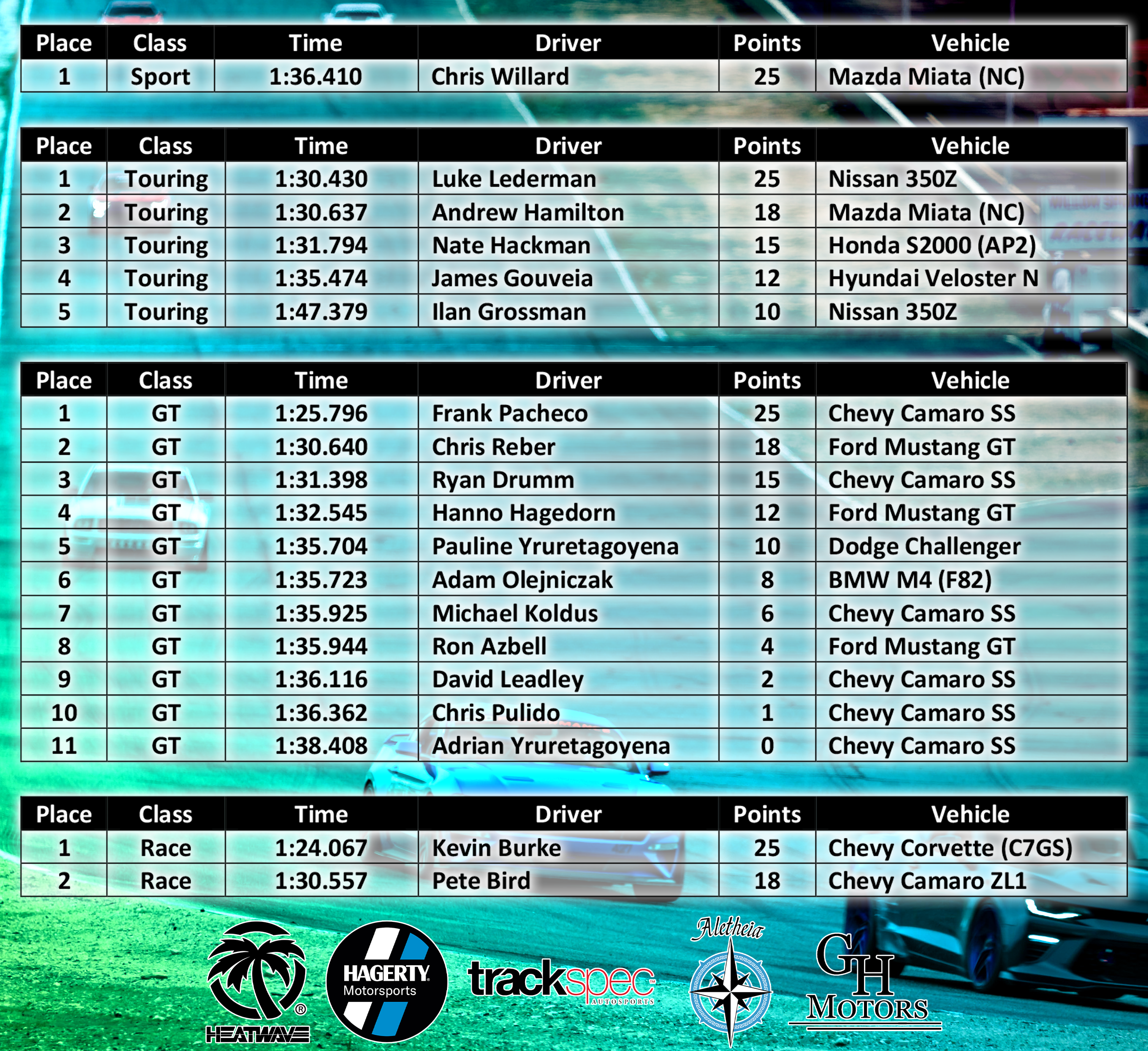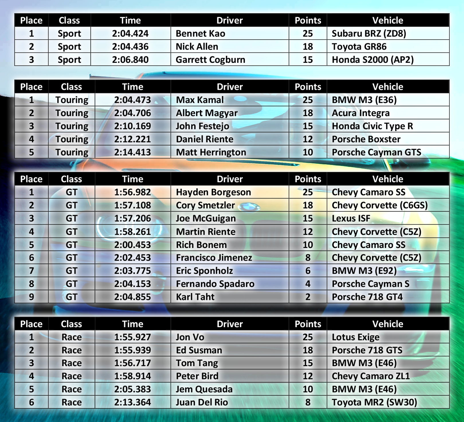 Results June 25th, 2022 OnGrid ShootOut - Willows Springs Int. Raceway - Streets of Willow CW