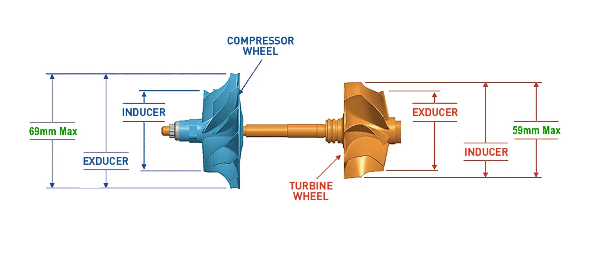 Turbos are limited to 69mm compressor and 59mm turbine.