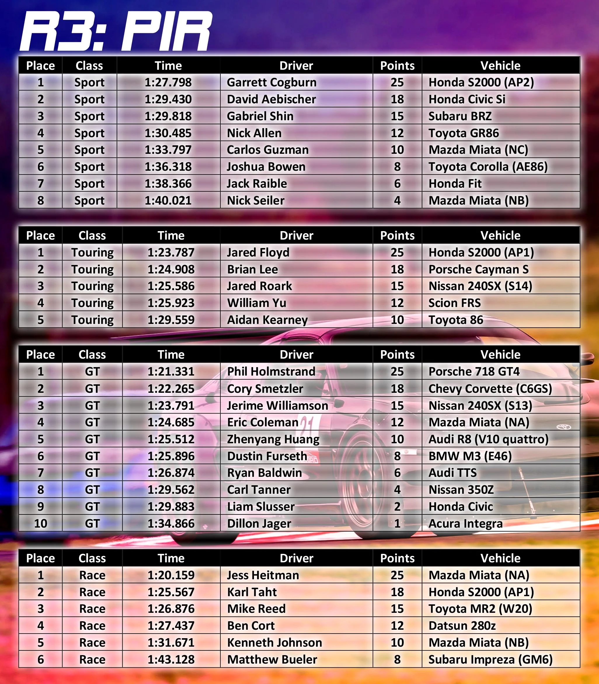 Results March 6th, 2022 OnGrid ShootOut Ridge Motorsports Park